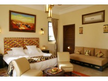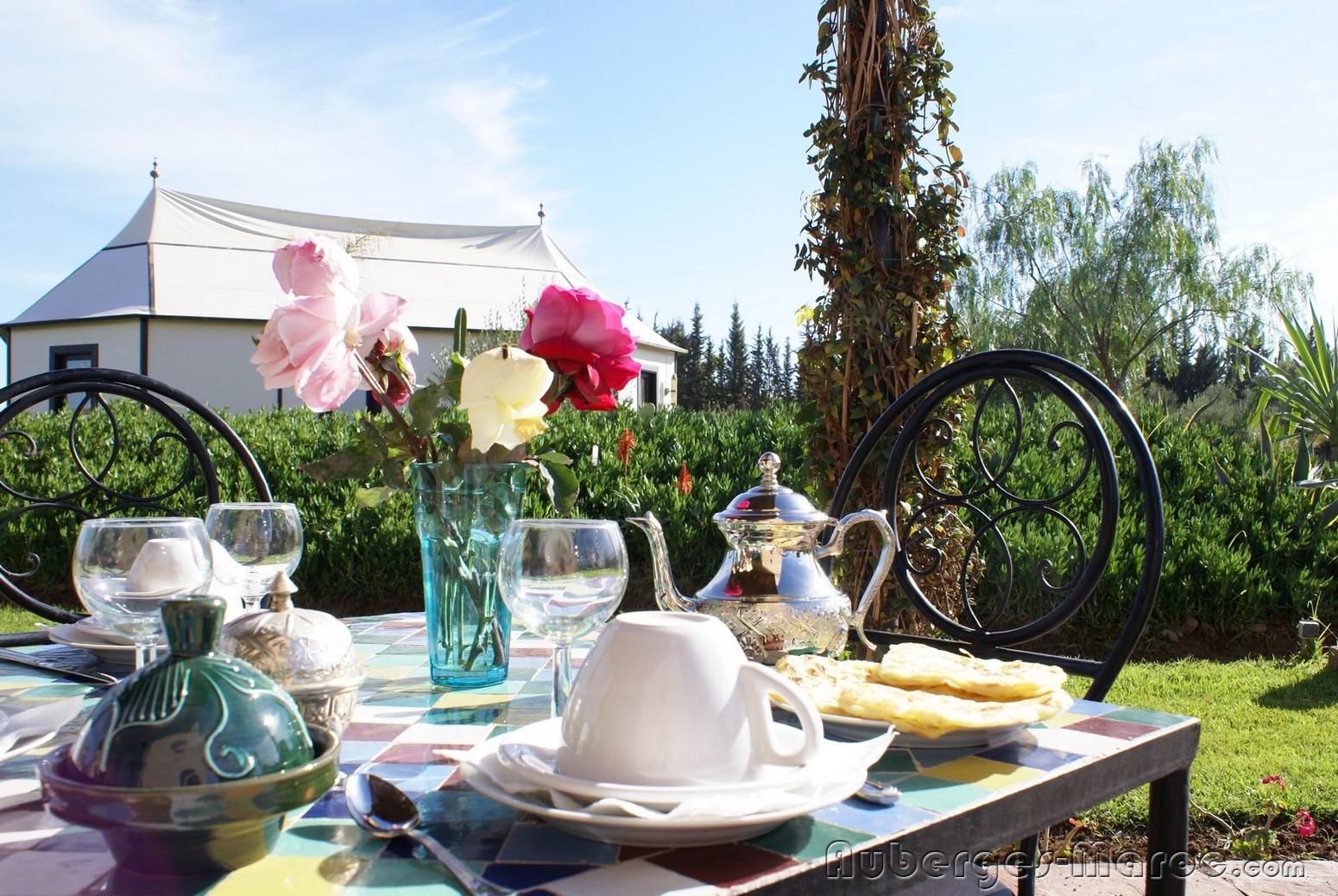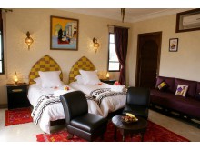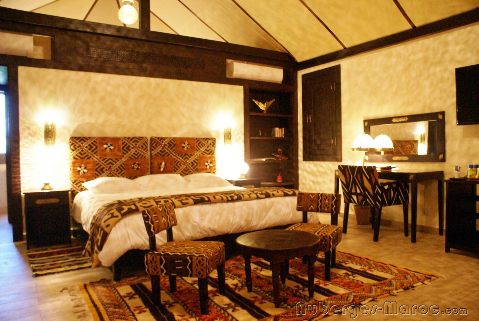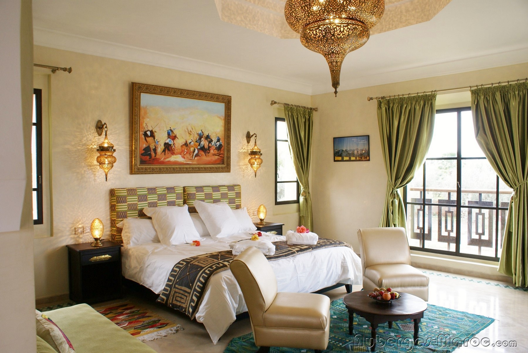Splendide villa à proximité de Marrakech, la Kasbah Aâlma d'Or vous offre une piscine privée et un SPA (hammam/gommage, massages et soins esthétique).. Cette maison de vacances au Maroc avec 5 chambres d'hôtes est le lieu idéal pour une halte de 1 ou 2 jours avant de partir pour Ouarzazate ou au retour d'une excursion dans le désert. La fourchette de prix d'une chambre est entre 56 € et 116 € en fonction de la chambre et de la saison - nous contacter.